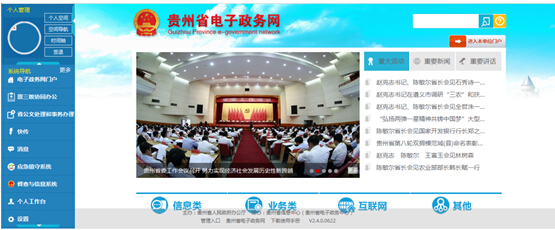 贵州省电子政务网上线,是贵州省深入推进数据资源和应用系统一体化设计、一体化建设,推行电子政务一站式办公、一体化服务,构建协调发展的电子政务生态系统,围绕实现“人在干、云在算、天在看”,打造行政管理新载体,推动政府管理与服务方式变革,探索利用大数据提升政府治理能力的具体行动。