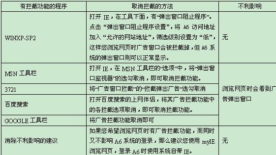 找到设置了窗口拦截的程序,然后将窗口拦截功能取消,或者卸载该程序,即可解决。下表给出了一些示例,供管理员在查找拦截点时参考。