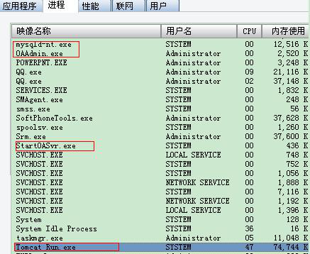 二、内占耗用情况:A6协同管理系统对内存要求较高,目前V276版本使用的mysql5.0及jdk1.5对内存要求相对高,加上目前产品性能优化提升,稳定运行大内存是必不可少条件。耗用内存=mysql占用内存+java占用内存+操作系统及其