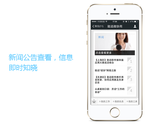 致远微协同采用了公有云与私有云相结合的创新技术与模式,在充分保证用户企业信息安全的前提下,为其带来更快捷、更便利,统一入口的移动办公应用。