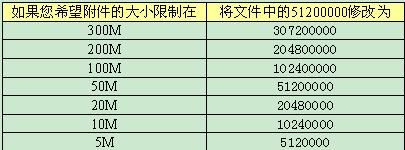 单位服务器硬盘空间有限,很多时候是要限制用户上传附件容量的,例如只允许上传10M以内的文件,方法:找到OA\tomcat\webapps\yyoa\web-INF\web.xml 文件,用UltraEdit或其他文本编辑软件打开(切勿用记事本打开!!!),查找51200000,修改中间的数字为10240000即可。改后保存,重启小地球即可生效。注意这个数字的调整单位B(字节),1M=1024000B,调整时需要注意这个转换关系。下表提供了常用的几个设置值: