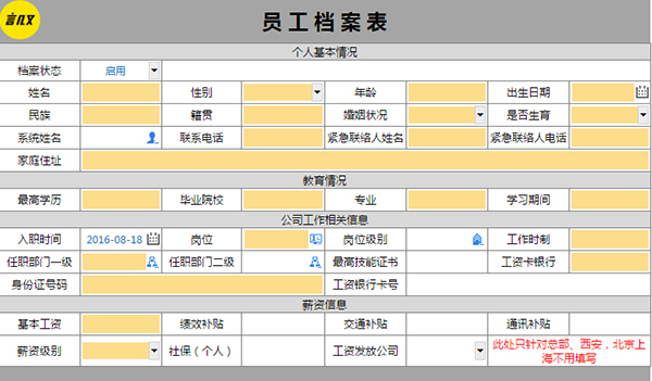 员工入职后第一时间在协同管理系统中新建个人档案